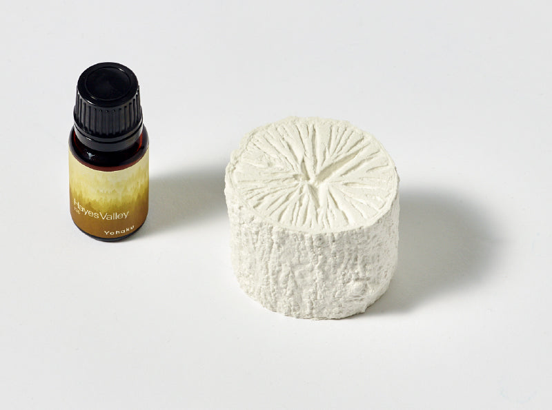 Arita ware is a famous style of Japanese porcelain with a history stretching back over 400 years. This aroma stone was crafted in the style of Hizen Yoshida ware, a noteworthy subgenre of Arita ware first made in the Osotoyama region of modern Saga Prefecture. This combination of Japanese traditional porcelain, inherited from olden times, and Yohaku aromas, centered on Japanese essential oils, offers a new way to enjoy a soothing experience.